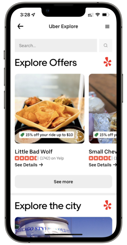 Kyytipalvelu Uber kokeilee uusia keinoja, joilla se saa lisää asiakkaita käyttämään palveluja. Yhtiö julkaisi uuden Uber Explore -ominaisuuden, jonka avulla käyttäjät voivat löytää kiinnostavia tapahtumia ja paikkoja lähiympäristöstään. Löytämisen ohjella käyttäjät voivat esimerkiksi tehdä ravintolavarauksia, ostaa lippuja konsertteihin ja muihin kulttuuritapahtumiin sekä lukea paikkojen Yelp-arvioita.